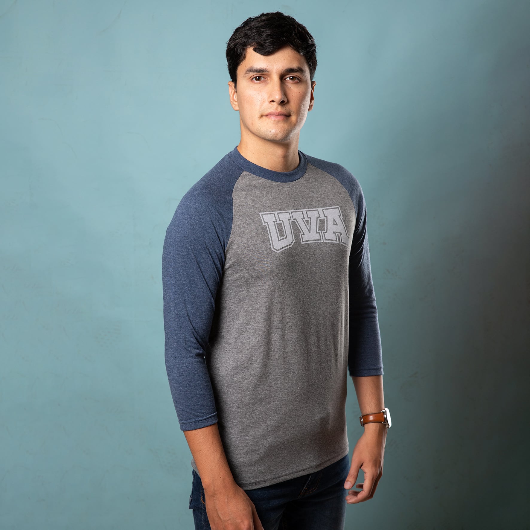 Playera para hombre con manga 3/4, confeccionada en 80% algodón de tela suave y cómoda. Su estilo deportivo-casual la hace ideal para la escuela o para hacer deporte. Cuenta con impresión en serigrafía blanca con la palabra ‘UVA’.